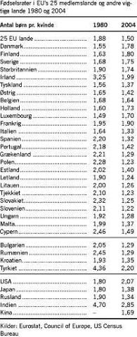 Tilbage i 1980 var det gennemsnitlige antal fødte børn i de nuværende 25 EU-lande på 1,88 pr. kvinde. Kun ti procent under de 2,1 børn, der skulle til, før verdensdelen reproducerede sig selv og dermed sikrede et uændret folketal i fremtiden.