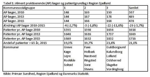 Udviklingen fra 2010 til 2013 i Region Sjælland viser, at antallet af praktiserende læger er faldet mest i de socioøkonomisk udsatte kommuner, som primært er udkantskommuner. Her skal de tilbageværende læger tage sig af flere patienter med højere forekomst af kroniske sygdomme og kortest middellevetid, skriver Mads Toft Kristensen i kronikken, hvis undersøgelse viser, at denne udvikling sidenhen er blevet forstærket.