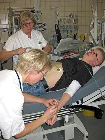 15.30 Jeg er omklædt, og vagten i FAM starter med konference. Der er især én tilsyneladende kritisk syg patient, som jeg selv vil følge op på. En alkoholiker, som er kommet ind med mavesmerter, og man har mistanke om, at hun har dissekerende aortaaneurisme. Hun har været til CT-skanning med kontrast, og det er det første, jeg skal følge op på. En patient som hende bliver fulgt tæt. Hun får målt puls, blodtryk og andre vitale værdier med helt fast interval.