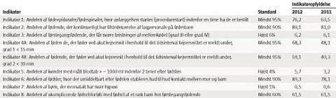 NIP-TAL Landets fødeafdelinger har fået sin anden kvalitetsmåling. De er målt på otte indikatorer, og kun på to af dem opfylder de målet. Der er for eksempel problemer med at få anæstesiologen til at komme hurtigt nok og bedøve, når det er nødvendigt. Desuden går der ofte længere tid, før et akut kejsersnit bliver sat i værk, end ambitionen tilsiger.