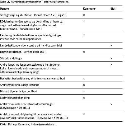 Enkelte bidder fra amternes nuværende område er dog pillet fra og går til staten, som får »filialkontorer« i hver af de fem storregioner. Det drejer sig om landsdækkende videnscentre på handicapområdet, om sikrede afdelinger samt om institutioner til meget adfærdsvanskelige børn og unge. Specialplan-lægningen bliver hos staten, hvor området hele tiden har hørt til.