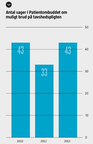 I 63 procent af sagerne fra 2010 til 2012 var der ikke grundlag for at kritisere sundhedspersonalet for brud på tavshedspligten. Faktisk sker det så sjældent, at patientoplysninger havner i de forkerte hænder, at juraprofessor Helle Bødker Madsen, som sidder i redaktionen for opslagsværket ”Sundheds-Karnov”, ikke har kendskab til en eneste retssag.