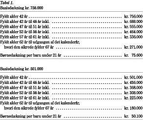 Alle deltagere er ved død inden udgangen af det kalenderår, hvori de fylder 70 år, sikret samme sum, kr. 309.600. Børnedækningen per barn under 21 år udgør kr. 30.960.