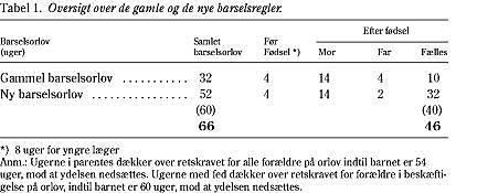 Folketinget har den 20. marts 2002 vedtaget et lovforslag om at forlænge barselsorloven. Loven trådte i kraft den 27. marts 2002, men har virkning fra den 1. januar 2002.