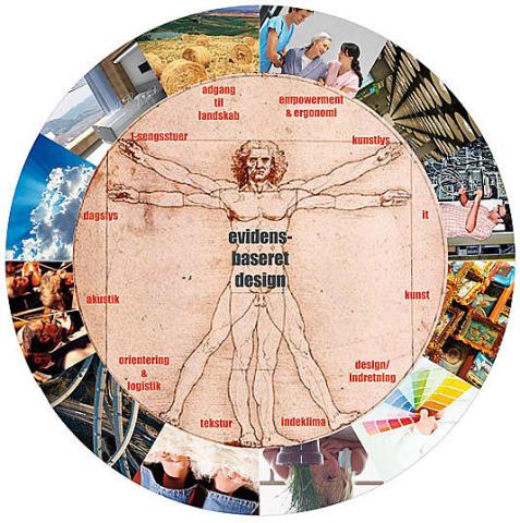 »Den røde tråd bliver det evidens-baserede byggeri. Internationalt er der i disse år større fokus på begreber som helende arkitektur og Evidence Based Design, der kan ses som en parallel til Evidence Based Medicine. Grundtanken er, at ethvert beslutningsgrundlag skal træffes på et videnskabeligt grundlag. Vi har i vore planer stillet det op i et hjul, som vi kalder Det helbredende Miljøhjul, og som har elementer som én-sengs stuer, dagslys, kunstlys, akustik, kunst, design, adgang til landskab, orientering og logistik, indeklima og meget mere.«