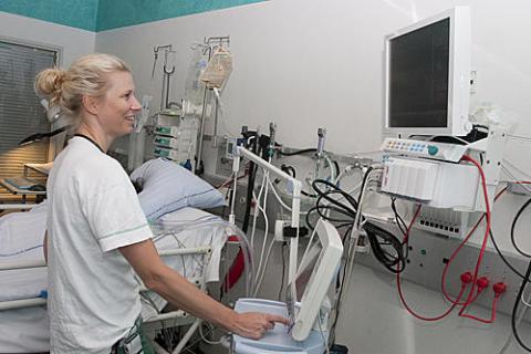08.00 Efter en sjælden, uafbrudt søvn står jeg op og går over på intensiv. Her tjekker jeg op på patienterne, jeg har gået stuegang på, så jeg er klar til morgenkonferencen.