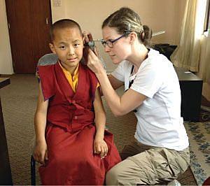 8.45 Vi går de tyve minutter hen til klinikken, der er et lille lokale ved siden af et stort buddhistisk tempel. Omkring 15 børnehjemsbørn er der allerede. Da vi venter på de to nonner, der skal oversætte fra enten nepalesisk eller tibetansk til engelsk, bruger vi tiden på at opdele børnene. Nogle starter hos optikeren, nogle hos tandlægen, resten hos mig. Det minimerer ventetiden.