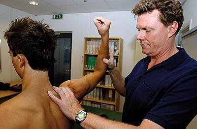 13.15 Jeg har nu haft fire forundersøgelser og førstegangsbesøg for skuldergener. Alle er sendt til fysioterapeut til videre behandling - den ene ender måske med operation. Nogle gange lyder det i medierne, som om vi opererer alt, hvad der kommer ind ad døren. Det er nok snarere hver femte.