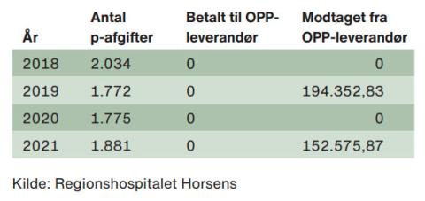Tal, som Regionshospitalet Horsens har sendt til Ugeskrift for Læger, viser, at der i 2021 blev udstedt 1.881 parkeringsafgifter ved hospitalets parkeringspladser.