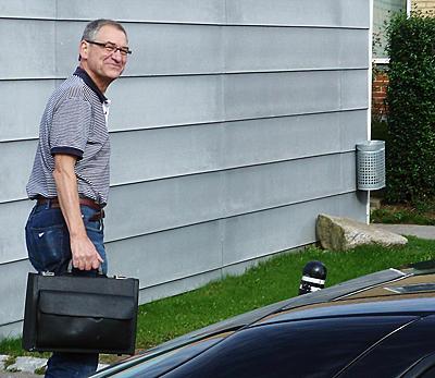17.00 Jeg har et besøg i Aarhus Nord. Det viser sig at være en af mine egne patienter, som lige er flyttet på plejehjem. Besøget gælder rosen i benene. Det er hyggeligt at se, hvordan han har fået det her. Den næste patient har en skulder, der kan være brækket, og som jeg sender på skadestuen. Så skal der skrives en dødsattest på hospicet Søholm, og derefter ser jeg på en indeklemt brok hos en gammel dame på plejehjem. Et par besøg til patienter med mavesmerter, diarre og opkastning. En, som er opereret i kæben og har fået en tandbyld. Næsten alle besøg er hos ældre mennesker. De andre kan oftest transporteres til lægevagten uden problemer.