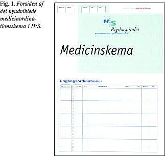 Der er et tiltagende krav om kvalitetssikring, åbenhed og dokumentation i sygehusvæsenet herunder sikring af optimale medicineringsprocesser omfattende alle procedurer fra medicinens ankomst på apoteket til administration hos patienten. H:S-sygehusene blev i 2002 akkrediteret af Joint Commission of Accreditation. Forud var gået flere år med en enorm arbejdsindsats på alle niveauer i H:S for at sikre akkrediteringen. Ikke mindst medicineringsprocesserne har der været fokus på, og i dette arbejde har de kliniske farmakologer i H:S i samarbejde med den Centrale Lægemiddelkomite naturligt taget del og ydet en betydelig indsats bl.a. med udarbejdelsen af retningslinjer på medicinområdet. Indførelse af et enstrenget medicinordinationssystem (H:S-medicinskema) (Fig. 1 ) hindrer dobbeltbogholderi i medicinoptegnelser, hindrer overskrivningsfejl (transskription) og tilsikrer herudover let adgang til og nemt overblik over patienternes aktuelle medicinstatus. Dette tiltag - med ledsagende audit over effekt - har medført krav fra Sundhedsstyrelsen om indførelse af et enstrenget ordinationsskema. De kliniske farmakologer har derudover deltaget i arbejdet med at forbedre rapporteringen om utilsigtede hændelser, herunder medicineringsfejl, været med til at analysere årsagerne til de utilsigtede hændelser og at sikre, at gentagelser ikke finder sted. I det hele taget har de kliniske farmakologer i H:S været med i alle dele af akkrediteringen inden for medicinområdet, og der er fortsat løbende behov for at vedligeholde og udbygge de forbedrede procedurer inden næste akkreditering i 2005 - et arbejde, som mhp. forestående akkreditering forhåbentlig kan være til glæde for andre hospitaler i landet. I Odense er et tilsvarende arbejde allerede begyndt med de lokale kliniske farmakologer som omdrejningsakse.