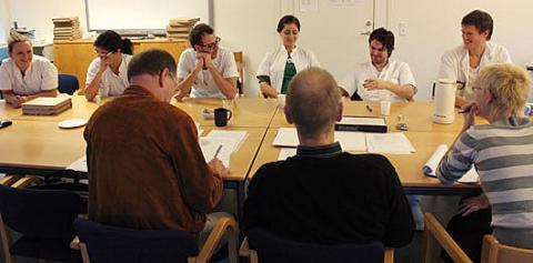 »Det kræver, at de har læst på lektien, før de kommer på afdelingen. Det har de som regel, når det er sidst på et semester. Dette hold var godt - men de første hold efter semesterstart er ofte ret blanke«, siger Helle Clausen.