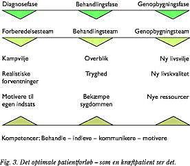For Erik Rasmussen var det helt essentielt, at den fase, som mange oplever som negativ - fra diagnosen stilles til behandlingen sættes i gang - ændres til en bevidst forberedelsesfase. Hvis den fase opleves som unødvendig ventetid, får man ikke mobiliseret patientens ressourser, tværtimod mister man dem (Fig. 3 ).
