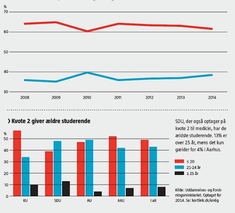 Drengene klarer sig bedre i optagelsestesten, mens piger og drenge klarer sig lige godt til optagelsessamtalerne, fortæller uddannelseschef på SDU, Merete Munk. Hun afviser, at testene i kvote 2 favoriserer mænd. Det drejer sig om at finde de bedst studieegnede. Til gengæld dominerer kvinderne på kvote 1 til medicinstudiet og står for 66% af optaget på SDU.