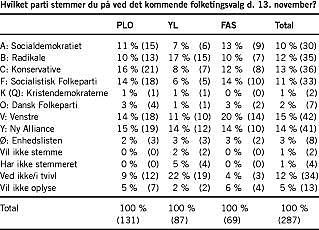 »Lægernes stemmefordeling ligger meget langt fra den, vi ser i meningsmålingerne. Der er to helt store tabere blandt lægerne, og det er de store partier, Venstre og Socialdemokratiet, som er nede på omkring halvdelen af, hvad de har i meningsmålingerne. Til gengæld står de små midterpartier, Ny Alliance og de Radikale bedre end i »virkeligheden«. Kun SF ligger nogenlunde som i meningsmålingerne.«