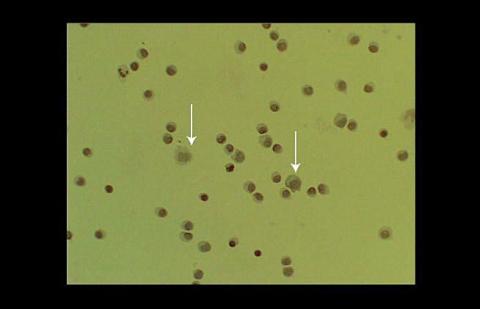 En 36-årig kvinde blev indlagt med febrilia, hovedpine og meningealia. Hun havde lignende tilfælde i 1988 og 1990, hvor man fandt serøs meningitis. En undersøgelse af spinalvæsken (CSV) viste 293 celler primært mononukleære og forhøjet protein. Patienten havde periodiske herpesudbrud på lårene, og ved polymerasekædereaktion (PCR) af CSV blev der påvist herpes simplex-virus type 2 (HSV-2). Patienten blev behandlet med aciclovir og blev afebril på fjerdedagen med aftagende hovedpine. Patienten opfyldte de kliniske kriterier for mollaretmeningitis (recidiverende feber med meningeal irritation, pleocytose og proteinforhøjelse). Ætiologien er oftest HSV-2. Cytologisk undersøgelse af CSV viste mollaretceller (markeret med pil). Det er store fragile mononukleære celler (oftest monocytter), der blev beskrevet af Mollaret i 1944. De er primært til stede det første døgn efter symptomdebut. Fænotypisk er de bønneformede med dybe kernekløfter og er til tider degenererede (ghost cells).