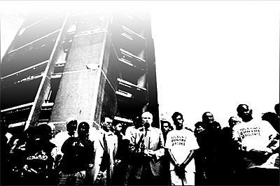 Derfor forlangte han, at parlamentsmedlemmerne skulle komme ud i ghettoen. Og herude lod han dem stavre op ad trapperne i den afbrændte opgang, kun oplyst af det spage lys fra lommelygter og mobiltelefoner.