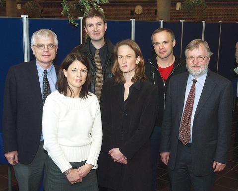 Diabetesforeningen uddeler hvert år mellem 4 og 5 mio. kr. til forskning i forebyggelse og behandling af diabetes. I alt 68 projekter modtog denne gang støtte. Ved legatuddelingen i Odense præsenterede en række forskere de diabetesprojekter, der har modtaget mere end 100.000 kr.: Fra venstre: Professor, dr.med. Karsten Buschard, Kommunehospitalet (150.000 kr.), Aina. S. Lihn fra forskerteamet ved professor, dr.med. Bjørn Richelsen, Århus Universitetshospital (150.000 kr.), overlæge, dr.med. Allan Flyvbjerg, Århus Universitetshospital (115.000 kr.), kursusreservelæge Tina Vilsbøll, Amtssygehuset i Gentofte (150.000 kr.), cand.scient., humanbiolog, ph.d. Hans P.M.M. Lauritzen, Panum Instituttet (125.000 kr.) og lektor, dr.scient. Jens Høiriis Nielsen, ligeledes Panum Instituttet (150.00 kr.). Professor, dr.med. Ole Schmitz, Århus Universitetshospital, der modtog 115.000 kr., var forhindret i at deltage ved legatuddelingen.