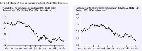Kursfaldene skyldtes en strøm af skuffende økonomiske nøgletal for Europa og USA. Fokus blev derfor rettet mod risikoen for et nyt længerevarende tilbageslag i den globale økonomi. I samspil med en generel skepsis over for aktier i kølvandet på en række konkurser og regnskabsskandaler skabte disse forhold betingelserne for kursfald på aktiemarkederne. Det globale aktieindeks (målt i danske kroner) faldt i alt med 33 pct. i 2002.