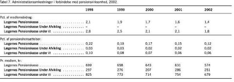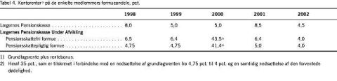 Kontorenten udgjorde i 2002 4,5 pct. i Lægernes Pensionskasse og 4,0 pct. i Lægernes Pensionskasse Under Afvikling