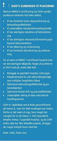 »HIMSS måler på kriterier, der drejer sig om den kliniske dagligdag. Det, synes jeg, er meget interessant for lægerne. Og som helhed er vi blevet meget mere kritiske over for, at de systemer, som patienterne skal overleve på, fungerer. Så det har virkelig betydet, at vi tænker it som strategisk instrument«.