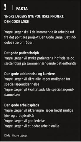 Efter at Yngre Lægers bestyrelse tilkendegav, at den vil foretage sproglige justeringer i forhold til fireårsreglen, få mere fokus på især forskning og huske på, at alle læger ikke er ansat på hospitaler, lykkedes det bestyrelsen på Yngre Lægers repræsentantskabsmøde på Hotel Hvide Hus i Aalborg torsdag at få vedtaget sit storstilede politiske projekt for de kommende fire års arbejde: Den Gode Læge.