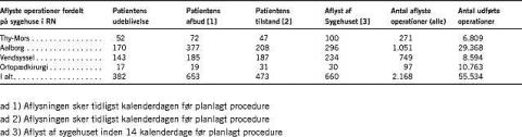 Region Nordjylland: Aflyste operationer i 1. halvår af 2007