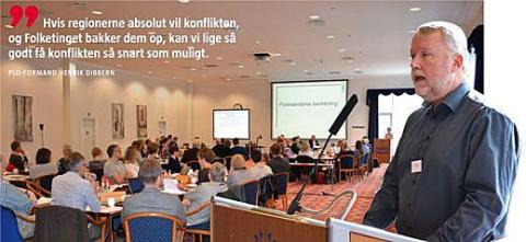 »Hvis regionerne absolut vil konflikten, og Folketinget bakker dem op, kan vi lige så godt få konflikten så snart som muligt. Hvis Folketinget derimod ikke bakker op om regionernes aggressive strategi, bør vi kunne forvente en klar udmelding om, hvad der så skal ske«, sagde han.