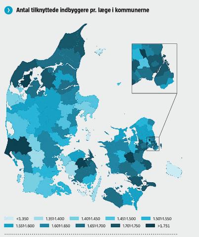 Hvis du ønsker at kende patienterne ekstra grundigt, så slå dig ned som praktiserende læge på Bornholm, Ærø, Samsø eller Læsø. Her er der 1.340 borgere eller mindre pr. praktiserende læge. I Varde, Ringsted og Morsø må hver læge overskue mindst 1.840 indbyggere i gennemsnit, viser en specialopgørelse, som regionerne har lavet for Ugeskrift for Læger.