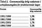 Den gennemsnitlige relative årlige vækst i arbejdsmængden har i 1990'erne således været høj, ca. 2 pct. p.a. Lavere i begyndelsen og i slutningen af perioden. Højere i midten af perioden.