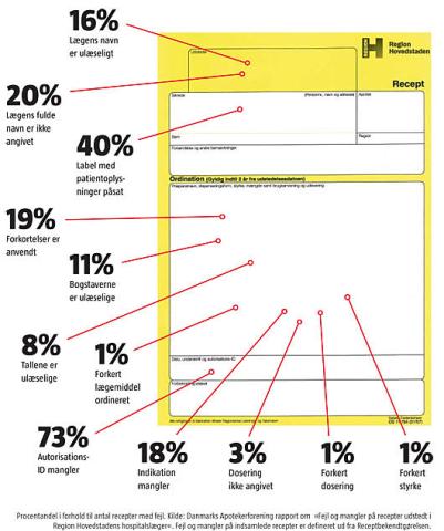 Kilde: Danmarks Apotekerforening rapport om »Fejl og mangler på recepter udstedt i Region Hovedstadens hospitalslæger«