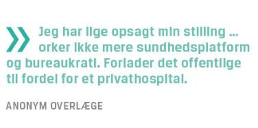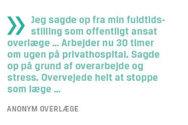 »Jeg ser granvoksne speciallæger, der bryder grædende sammen. Sygemelder sig, snerrer eller regulært bryder grædende sammen … Erfarne speciallæger. Arbejdsglæden er væk, folk fiser rundt som hovedløse høns, og tingene gøres ikke ordentligt«.
