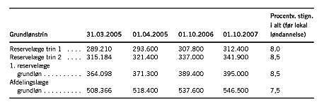 For afdelingslæger er der afsat 2,5 pct. til lokal løndannelse, fordelt med 1,25 pct. pr. 1. januar 2006 og 1,25 pct. pr. 1. januar 2007. For øvrige yngre læger er der afsat 1,25 pct. pr. 1. januar 2007.