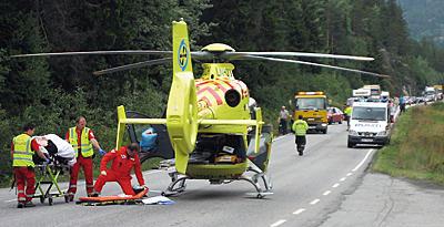 Hvis patientens tilstand kræver ekstra indsats, kan der tilkaldes en helikopter, som med Lars Knudsens ord nærmest »bringer sygehuset ud til patienten«, og som kan bringe patienten til det rigtige sygehus med den specialiserede behandling - afhængigt af, om man står med en traumepatient, en apoplektisk eller en hjertepatient, en hovedskade eller måske et for tidligt født barn, der skal i en kuvøse og til en neonatalafdeling.