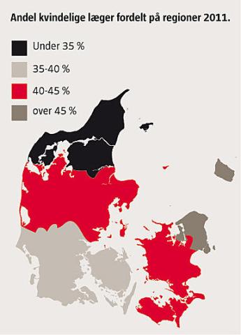 Ifølge PLO er andelen af kvindelige praksislæger nu oppe på 41,2 pct., men den fordeler sig skævt over landet.