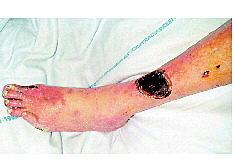 Akut underekstremitetsiskæmi pga. emboli: Benet vil typisk være cyanotisk og hævet.