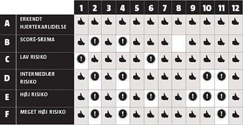 B. Ni ud af 12 læger er enige i, at SCORE-skemaet skal bruges til at risikovurdere danskere uden erkendt iskæmisk hjerte-kar-sygdom. To svarer hverken/eller (2, 4). Én undlod at svare (8).