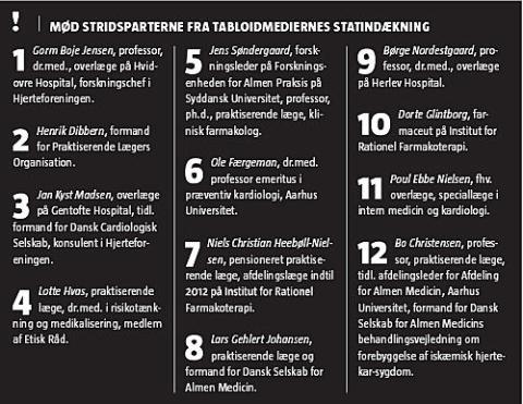 Formand for Dansk Cardiologisk Selskab, Mogens Lytken Larsen, der selv har deltaget i tabloidmediernes statinhistorier, ønskede ikke at svare på Ugeskriftets rundspørge. Han mente, at et fagtidsskrift dels burde lave en faglig analyse af spørgsmålene, dels undlade de mere tro, mene, synes-agtige spørgsmål.