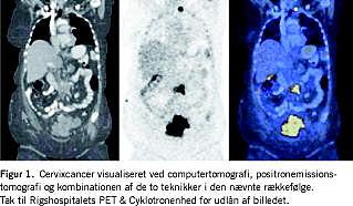 Anvendelsen af positronemissionstomografi (PET) i kombination med computertomografi (CT) har medført helt nye diagnostiske muligheder [1] (Figur 1 ). Påvisning af metaboliske ændringer i meget få maligne celler (vha. PET), sammenholdt med en præcis anatomisk lokalisation af disse celler (vha. CT) danner grundlag for en meget detaljeret beskrivelse af sygdommens forekomst. Dette peger på, at vi i fremtiden kan opnå en mere nøjagtig stadieinddeling af cancersygdommen og dermed anvende en mere målrettet og effektiv behandling, der er forbundet med mindre morbiditet.