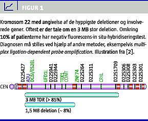 De fænotypiske manifestationer ved 22q11DS er overordentligt variable, hvilket formentlig er en væsentlig årsag til, at syndromet er underdiagnosticeret. Vi har beskrevet to forskellige sygehistorier, hos hvem manifestationerne ikke umiddelbart gav anledning til mistanke om 22q11DS. De hyppigste manifestationer ved syndromet er forsinket udvikling, nedsat kognitivt funktionsniveau og hjertemisdannelser [1, 3, 4]. Tidlig diagnostik er vigtig for at kunne yde den rette støtte til barnet og familien og for at imødegå de mangfoldige komplikationer ved syndromet.