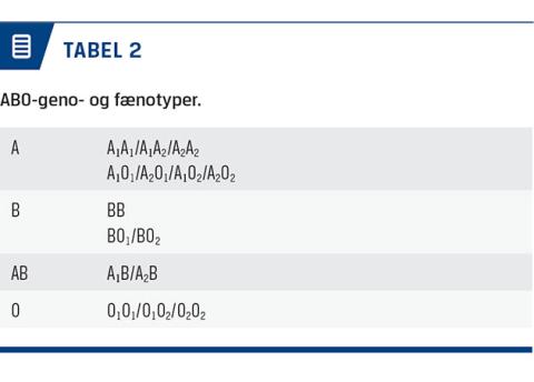 I de to studier, hvor man har undersøgt AB0-blodtyper og risiko for udvikling af VTE ved kirurgi, har man i begge angivet blodtypen fænotypisk [18, 19]. Genotypen ville have været mere informativ for at kunne differentiere mellem hetero- og homozygote bærere af A- og B-alleler samt give mulighed for at skelne mellem subtyperne A1/A2 og O1/O2 (Tabel 2).