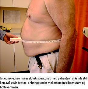 Danske patienter i almen praksis har en høj prævalens af abdominal fedme. Abdominal fedme er associeret med en øget prævalens af diabetes, dyslipidæmi og hypertension. Taljeomfanget anbefales derfor bestemt hos patienter i almen praksis på vid indikation f.eks. i forbindelse med helbredsundersøgelser, og patienter med forhøjet taljemål bør tilbydes nærmere undersøgelser med henblik på at diagnosticere ikkeerkendt diabetes, dyslipidæmi og hypertension.