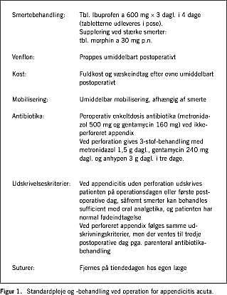 Standardpleje og behandling af patienter opereret for appendicitis acuta er anført i Figur 1 .