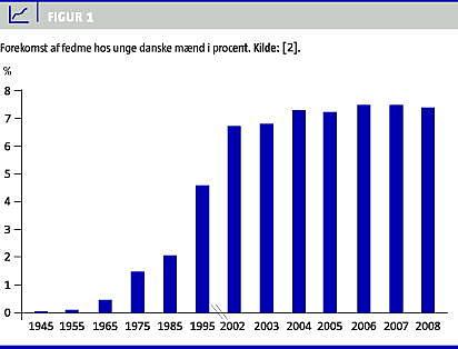 Adipositas beskrives af WHO i European action plan for food and nutrition policy 2007-2012 [1], som en af det 21. århundredes største sundhedsudfordringer. Begrundelsen er, at prævalensen af adipositas globalt er tredoblet i løbet af 25 år, og følgesygdommene er multiple og resursekrævende. Gruppen af overvægtige og adipøse udgør tilsammen mere end 50% af befolkningen i de fleste europæiske lande. Stigningen i prævalensen fortsætter specielt blandt børn og unge, omend en vis stagnation er indtrådt i Danmark blandt unge mænd ved session (Figur 1 ). Fedme er aktuelt ansvarlig for 2-8% af de samlede sundhedsomkostninger og 10-13% af alle dødsfald i Europa [1]. Udfordringerne er kendte, mens omfanget af den medicinske behandling fortsat er begrænset, hvilket vil blive gennemgået.