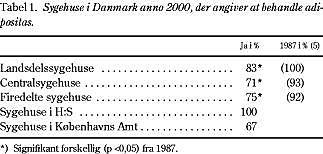 Introduktion: Fedme er et voksende sundhedsproblem. Formålet med denne undersøgelse var at belyse, hvordan adipositas behandles på danske sygehuse anno 2000 og at sammenligne med en lignende undersøgelse fra 1987.