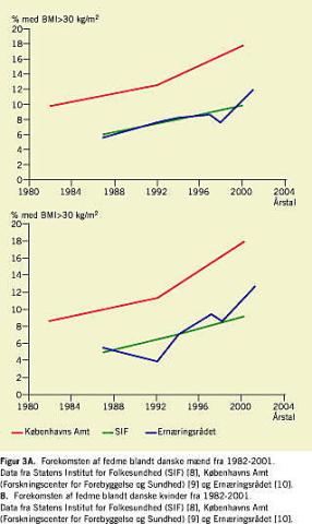 Inden for de seneste 25-30 år er der i langt de fleste aldersgrupper i Danmark sket en markant forøgelse af forekomsten af fedme. De voldsomste stigninger ses i undersøgelser baseret på objektive data af totalpopulationer (sessionsdata og ind/