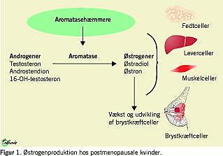Aromatasehæmmere eller -inaktivatorer er stoffer, som blokerer den enzymatiske omdannelse af androgener (produceret i perifert væv hos postmenopausale kvinder) til østrogener (Figur 1 ). Hos postmenopausale kvinder opnås hermed en reduktion af cirkulerende østrogen til næsten umålelige værdier.