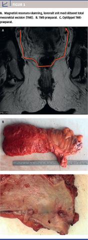 Tidligere var chancen for helbredelse mindre for patienter med RC end for patienter med CC, men optimering af den kirurgiske teknik med indførelse af total mesorektal excision (TME) (Figur 1) og mere korrekt stadieinddeling med magnetisk resonans-skanning, indførelse af tværfaglig konference og præoperativ kort strålebehandling (RT) eller kemostrålebehandling (KRT) til højrisikopatienter har udlignet denne forskel [1] og har reduceret andelen af lokalrecidiver fra 40% til ca. 10% [2]. Imidlertid dør omkring halvdelen af patienterne fortsat pga. fjernmetastasering, hvorfor fokus nu er rettet mod at hindre systemisk spredning.