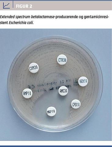 E. coli og K. pneumoniae med ESBL-medieret cephalosporinresistens (Figur 2) isoleres hyppigt fra patienter i Danmark [23].