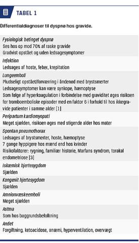 Dyspnø er et hyppigt forekommende symptom i forbindelse med graviditet. Det er en klinisk udfordring at vurdere, om åndenøden skyldes normale fysiologiske forandringer ved graviditeten, eller om der er underliggende kardiopulmonal patologi. Fysiologisk åndenød ses hos mere end halvdelen af de raske gravide kvin-
